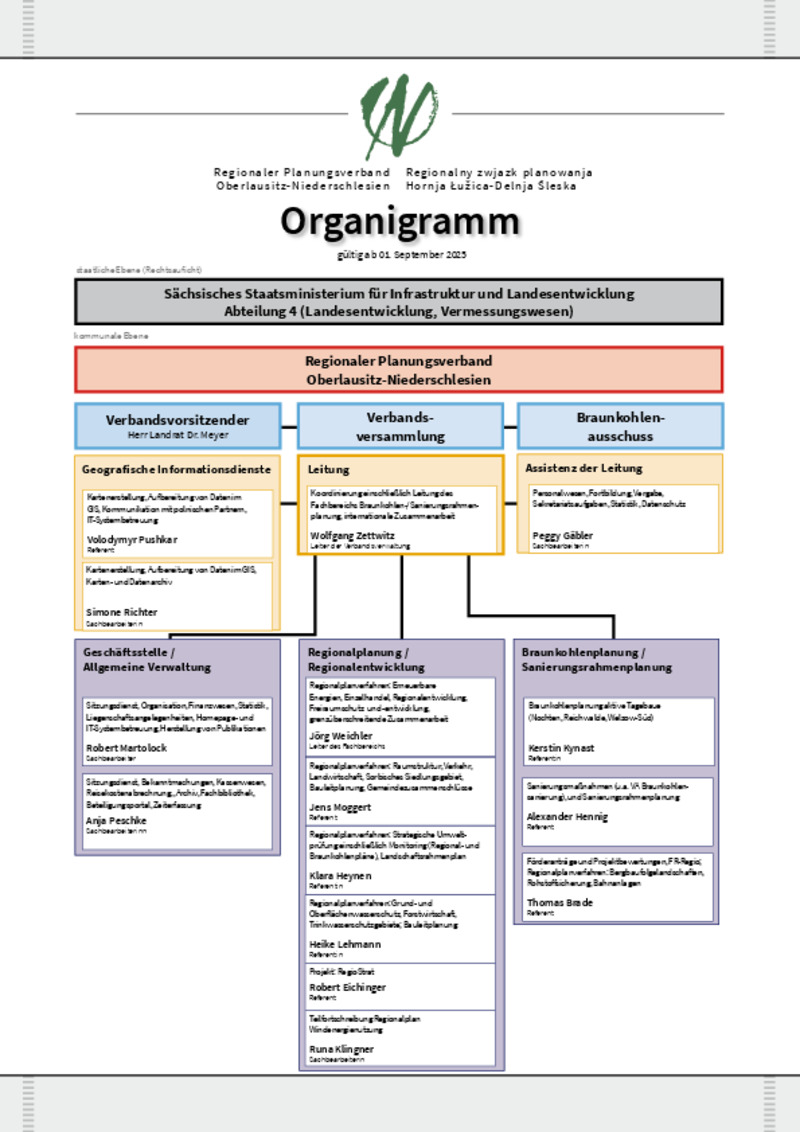 Der Regionale Planungsverband unterliegt der Rechtsaufsicht der obersten Raumordnungs- und Landesplanungsbehörde (Sächsisches Staatsministerium für Infrastruktur und Landesentwicklung).